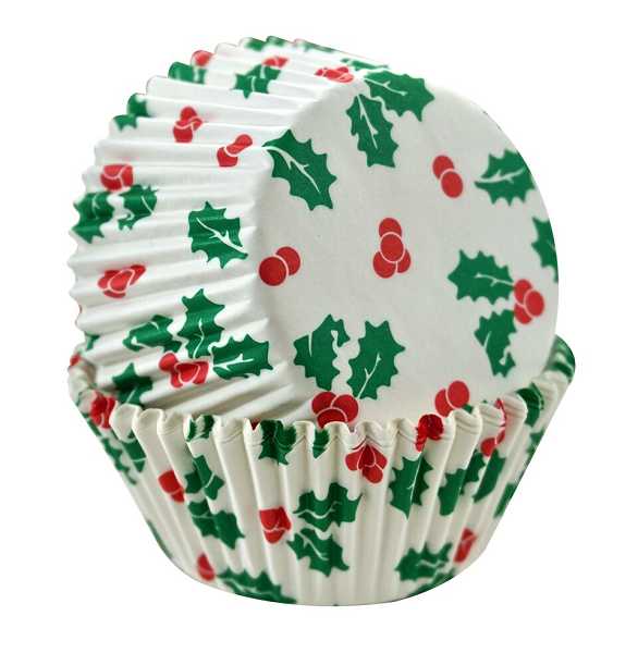 Holly & Berry Bake Cups 2″ Base 50 count