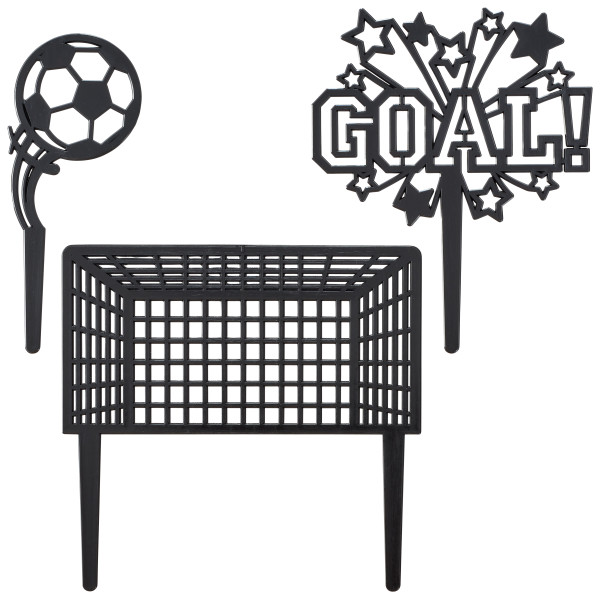 Great for birthdays or team celebrations, unleash your creativity with this Goal Cake Kit! This 3-Piece set can be configured any way you please. Includes a net, a soccer ball, and a goal pic.