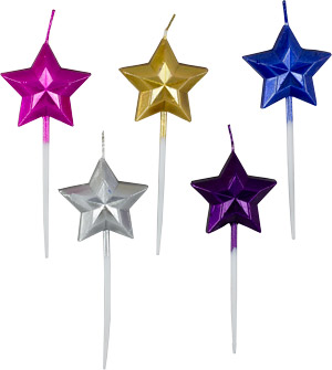 Metallic Star Candles On Picks Set 5 Candles per set quantity