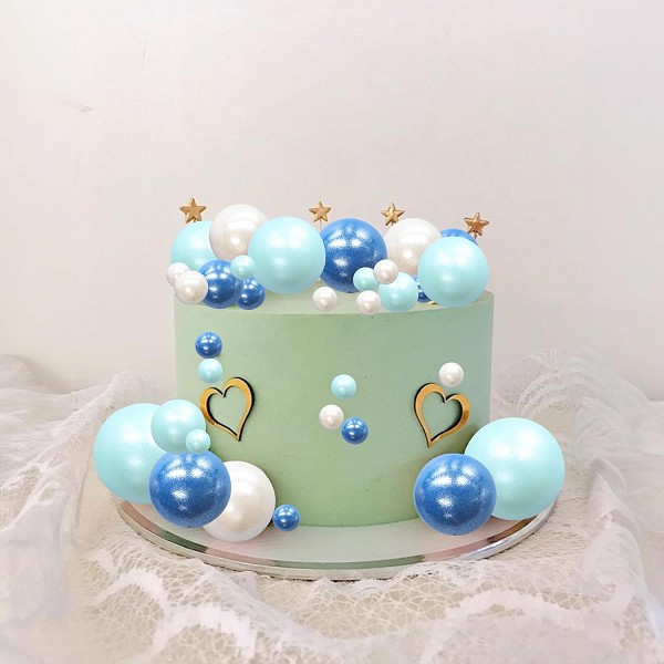 Pearl White and Blue Mini Balloon Balls Cake Toppers 12 Count