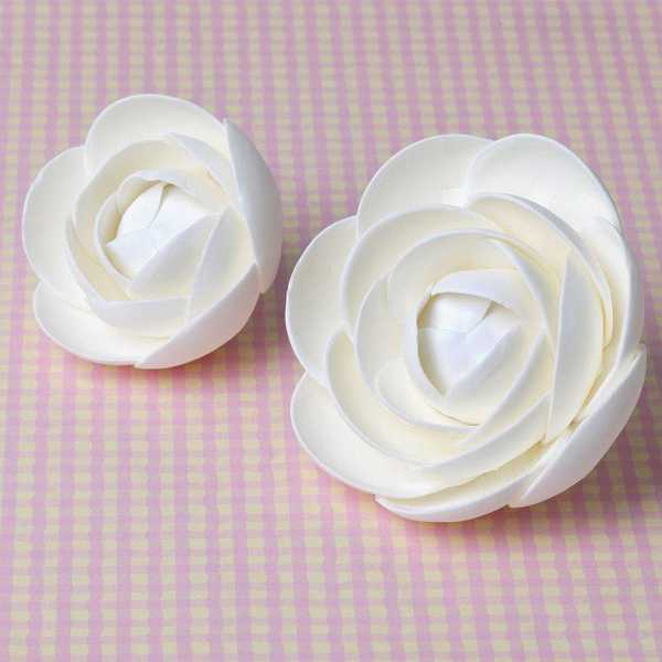 Symbolizing love, honor, faith, and beauty, the gorgeous Rose is a timeless and elegant flower that is used for almost every occasion. With its charming blooms and variety of meanings, the rose is perfect for weddings, birthdays and other celebrations. Readymade by hand from gumpaste, these pre-wired White Glam Roses can be easily placed on cakes and offer a way of decorating hassle free for both professional and amateur decorators. Achieve a realistic appearance and make your cakes blossom into beautiful creations.