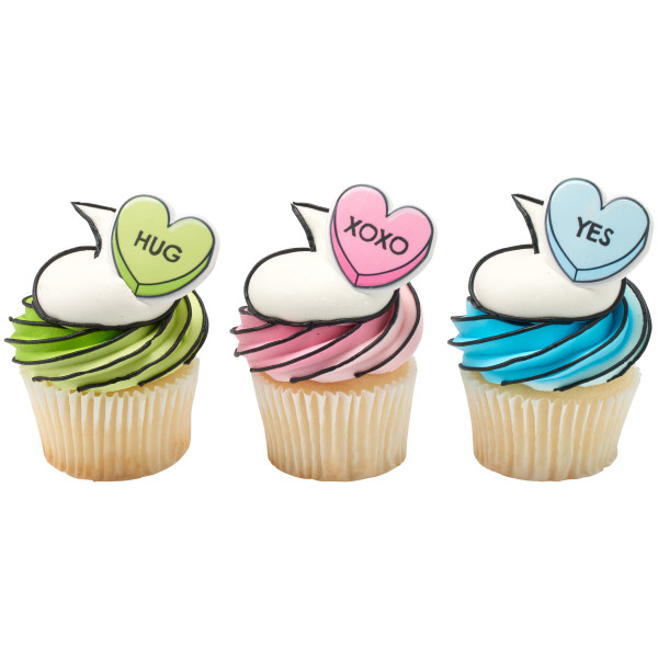 Candy Hearts Cupcake Rings 12 count