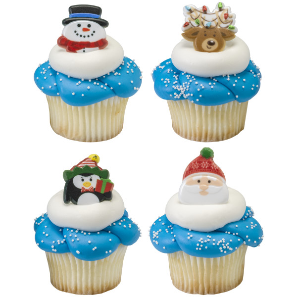 These fun and cute holiday icons are great for your holiday desserts. Assortment includes snowmen, reindeer, penguin, and Santa Claus. Great for cupcakes, donuts, or even finish off the look of a cake.
