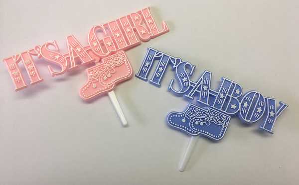 It's a Boy or Girl with Booties Blue or Pink 4 1/2" x 2" 2 count quantity